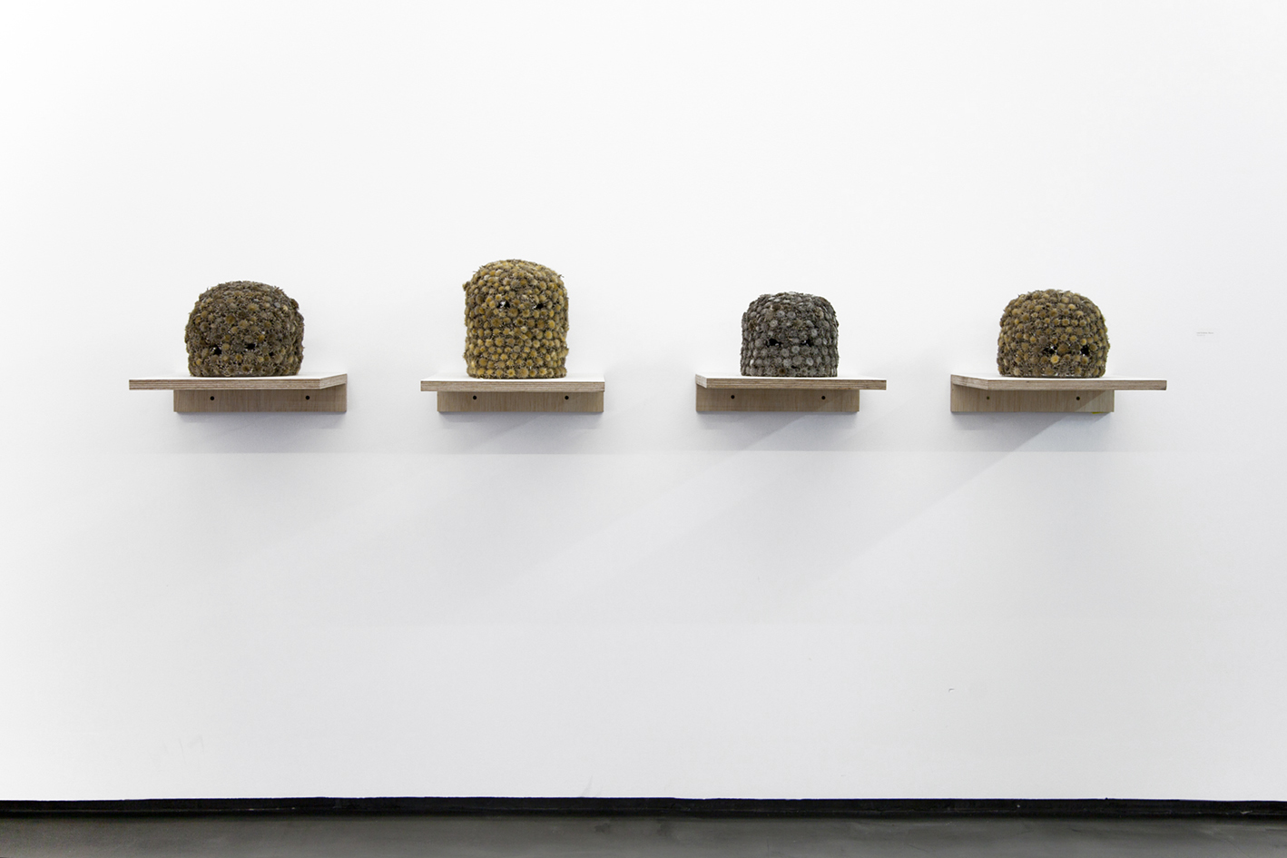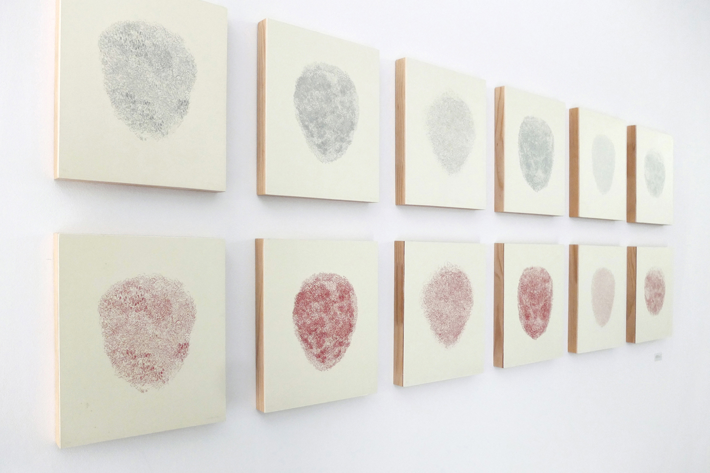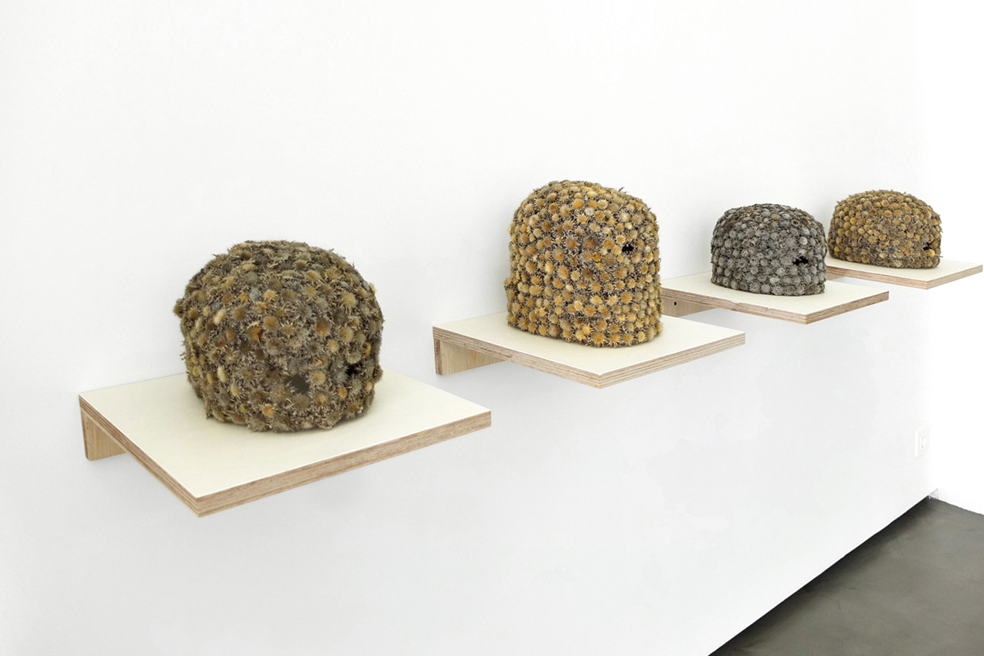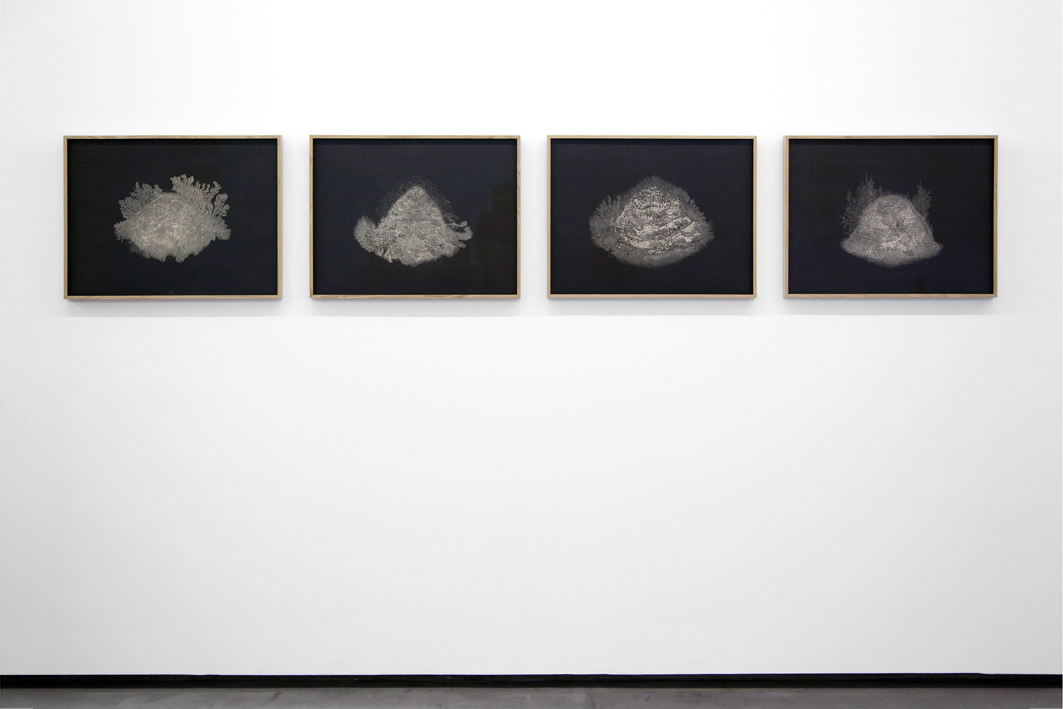 Transhumance muestra los últimos trabajos realizados en colaboración con Muriel Moreau (París, 1975). Bajo este título se agrupan una serie de aguafuertes y esculturas realizadas con elementos recogidos en la naturaleza. A través de su particular estilo de micronarrativas, la artista evoca una cartografía intuitiva que relaciona el cuerpo con el cosmos trazando caminos que convergen desde diferentes dimensiones. Este deambular inconsciente por lo natural queda grabado, tallado sobre el cobre como un acto primitivo que habla del viaje y el tiempo. El paisaje se redibuja con el rojo de la sangre, los capilares sirven para tejer un abrigo nocturno y se construyen máscaras con los restos palpitantes de la primavera. El concepto de transhumancia evoca un viaje tanto físico y paisajístico como conceptual, al mismo tiempo que evidencia el encuentro de diferentes técnicas y materiales.