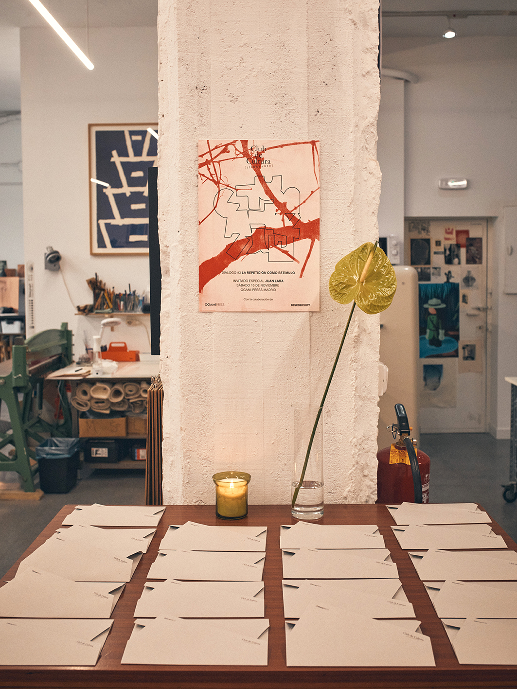 El Club de Cultura Itinerante es un espacio de encuentro cultural, artístico y gastronómico cuyo objetivo principal es generar espacios de diálogo e intercambio de reflexiones sobre temas culturales. Ogami Press acogió uno de sus encuentros con la participación como invitado especial de Juan Lara: “Cuando invitamos a perfiles creativos, en lugar de proponerles exponer únicamente sobre su obra o trayectoria, les invitamos a la mesa a conversar con personas que no necesariamente comparten la disciplina que ellos desarrollan. Las conversaciones sobrevuelan cuestiones mundanas y filosóficas que nos conectan a todos. Así, el acercamiento a la creación artística se aborda desde un enfoque muy enriquecedor para todos los asistentes.”