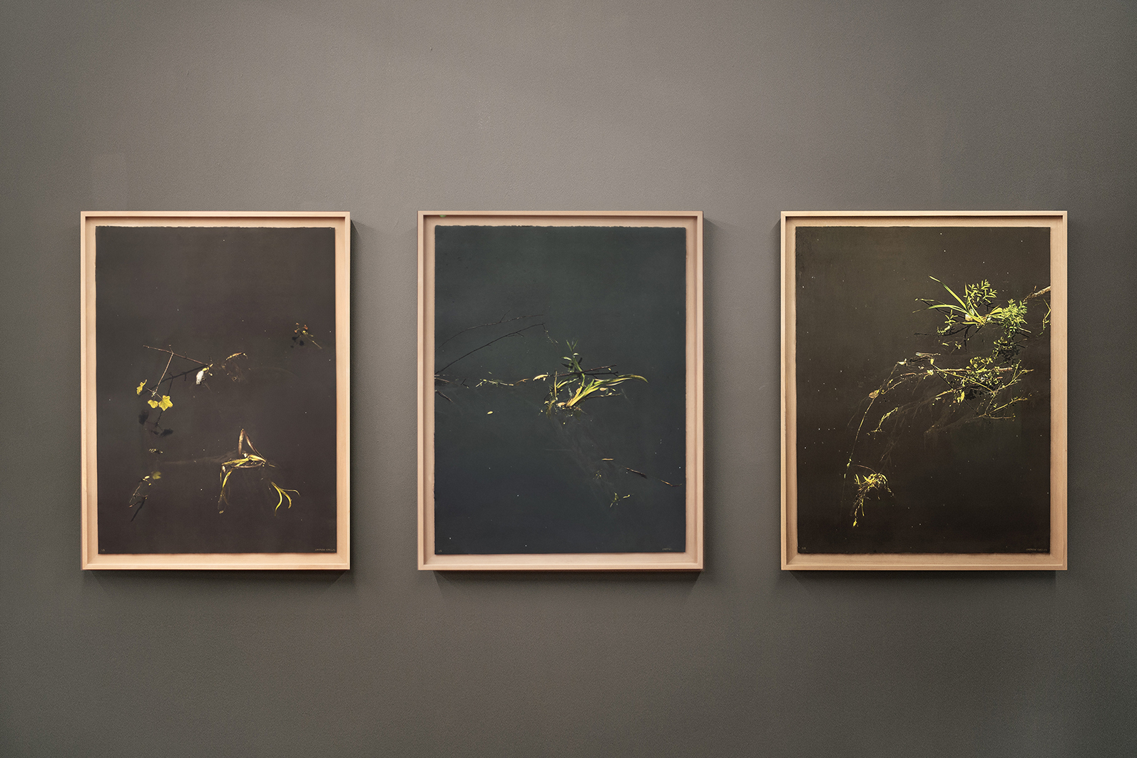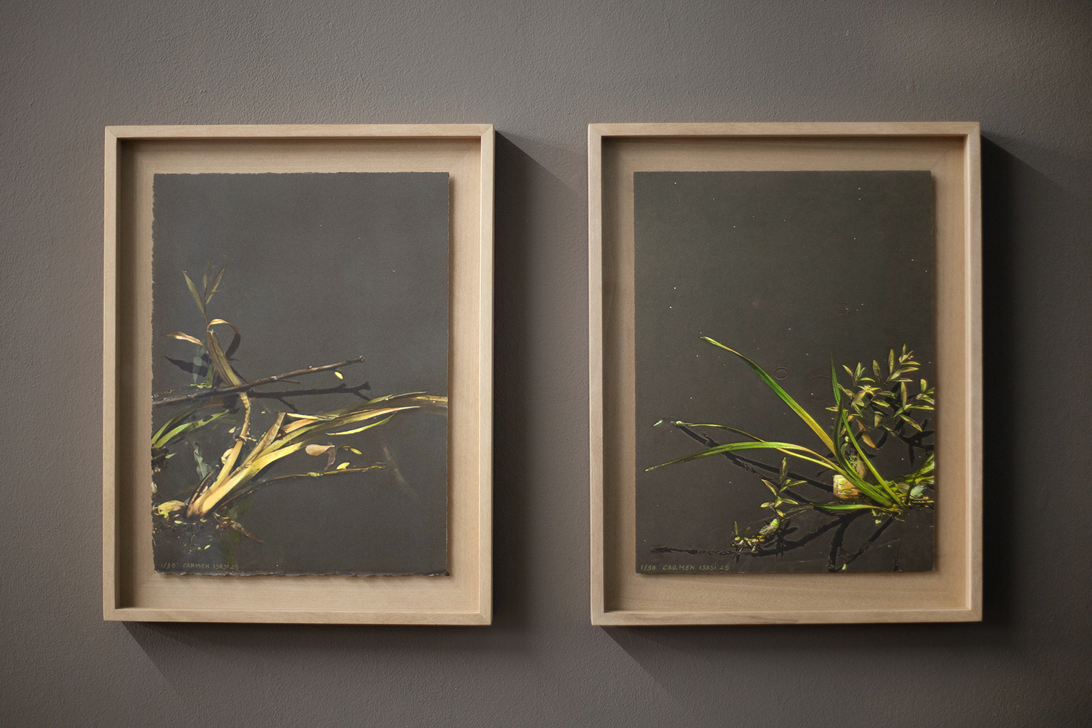 Las plantas que protagonizan estos fotograbados no se arraigan, flotan. Son figuras de resistencia en un oscuro mundo líquido.