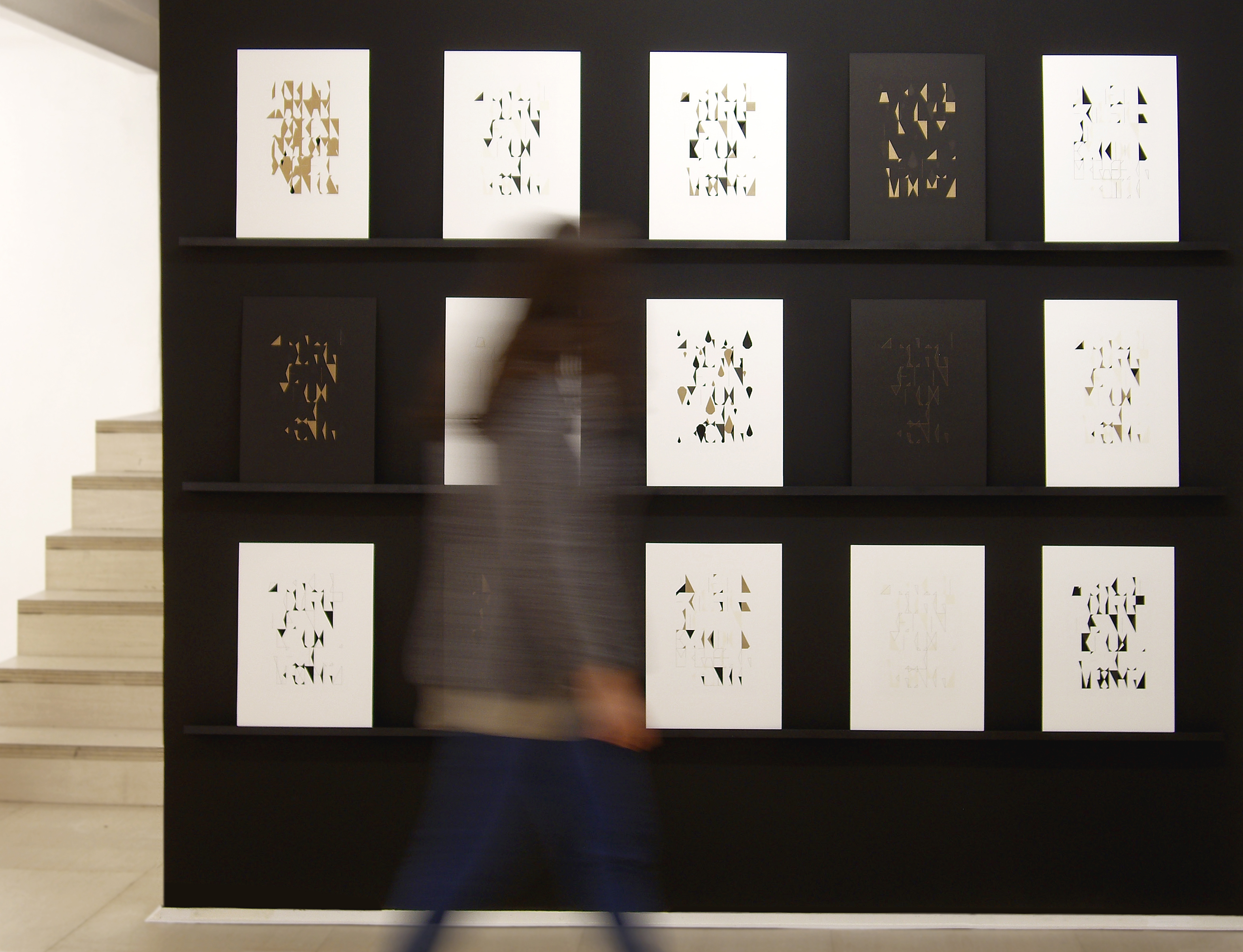"Tal vez resulte que el interés de Écrire en blanc esté entonces en la superficie. En todos y cada uno de los pliegues y caras que rodean esas palabras –palabras objeto–, en los pulcros recortes que contruyen una rigurosa tipografía reducida hasta el mínimo, que a su vez construye las palabras, y que como éstas, termina por desdibujarse hasta perder su legibilidad. Y quizá sea precisamente en esa superficie donde, si se mira con atención, aparece el abismo. Es de este modo como el cuerpo reaparece, a través de los intersticios, en las fisuras y en los ecos que generan las sombras de las palabras. Es ahí donde aparecen de nuevo las emociones, y con ellas la presencia. Las superficies de Écrire en blanc son, de hecho, el lugar que todos podemos habitar, la posición desde donde reapropiarnos de las grafías que componen las citas, el espacio que a partir de ese momento permite resignificar nuestras emociones con palabras de otros. Para entonces, el contenido de esas palabras ya nos pertenece, y su escritura desdibujada ya no es sino un ruido de fondo, niebla, blanco que aún estando presente, desaparece." Roberto González García