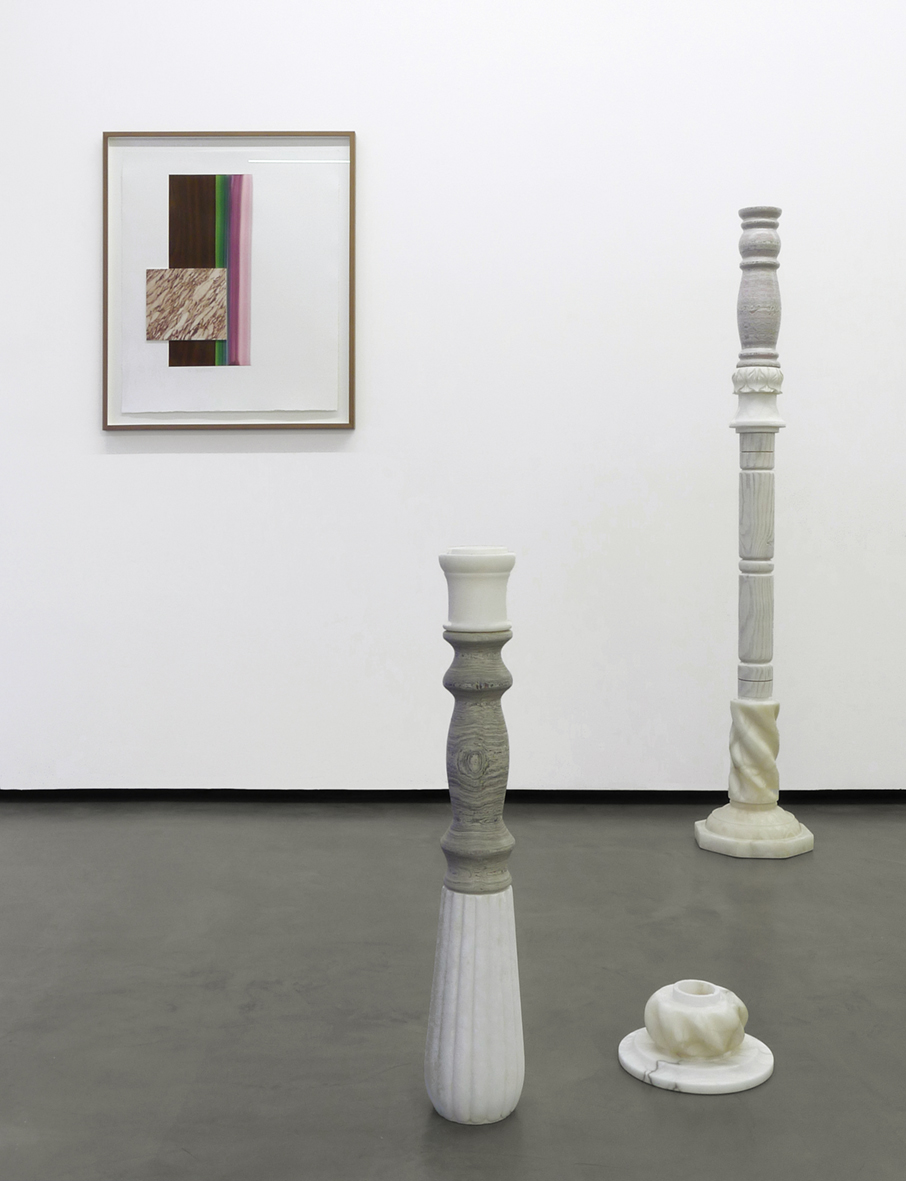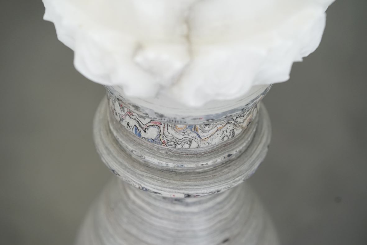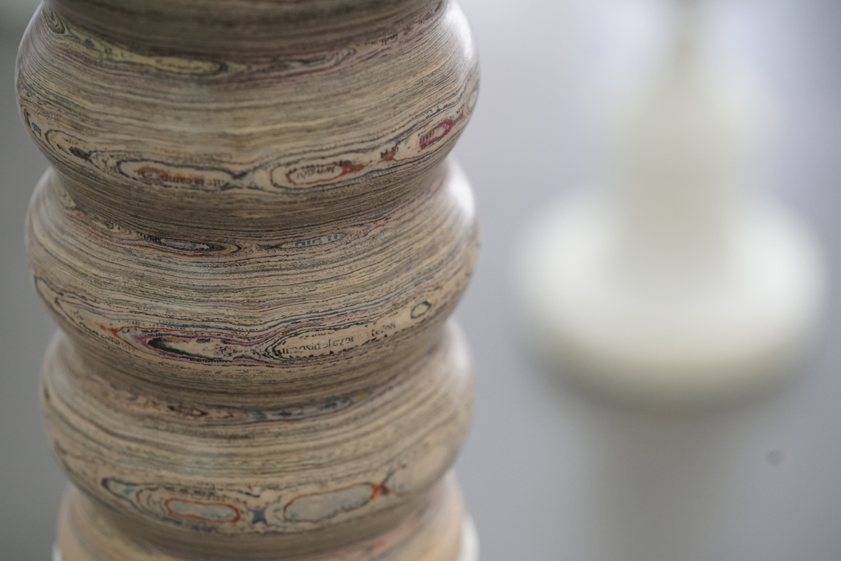 Papel impreso, papel de periódico, alabastro, mármol y madera