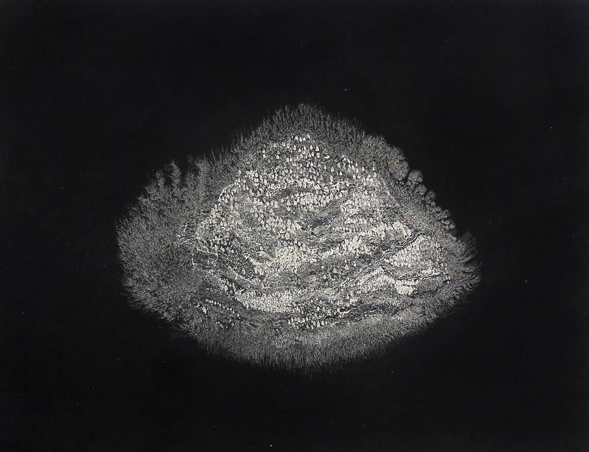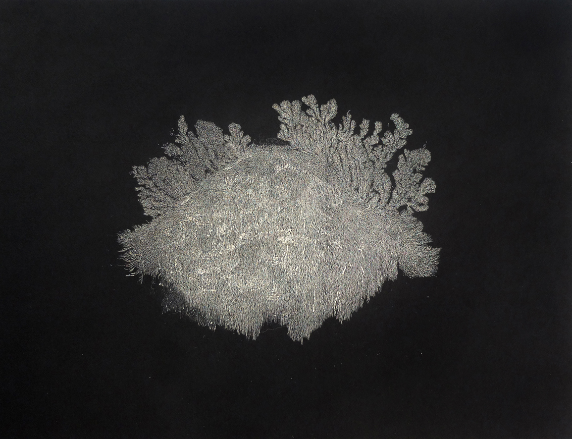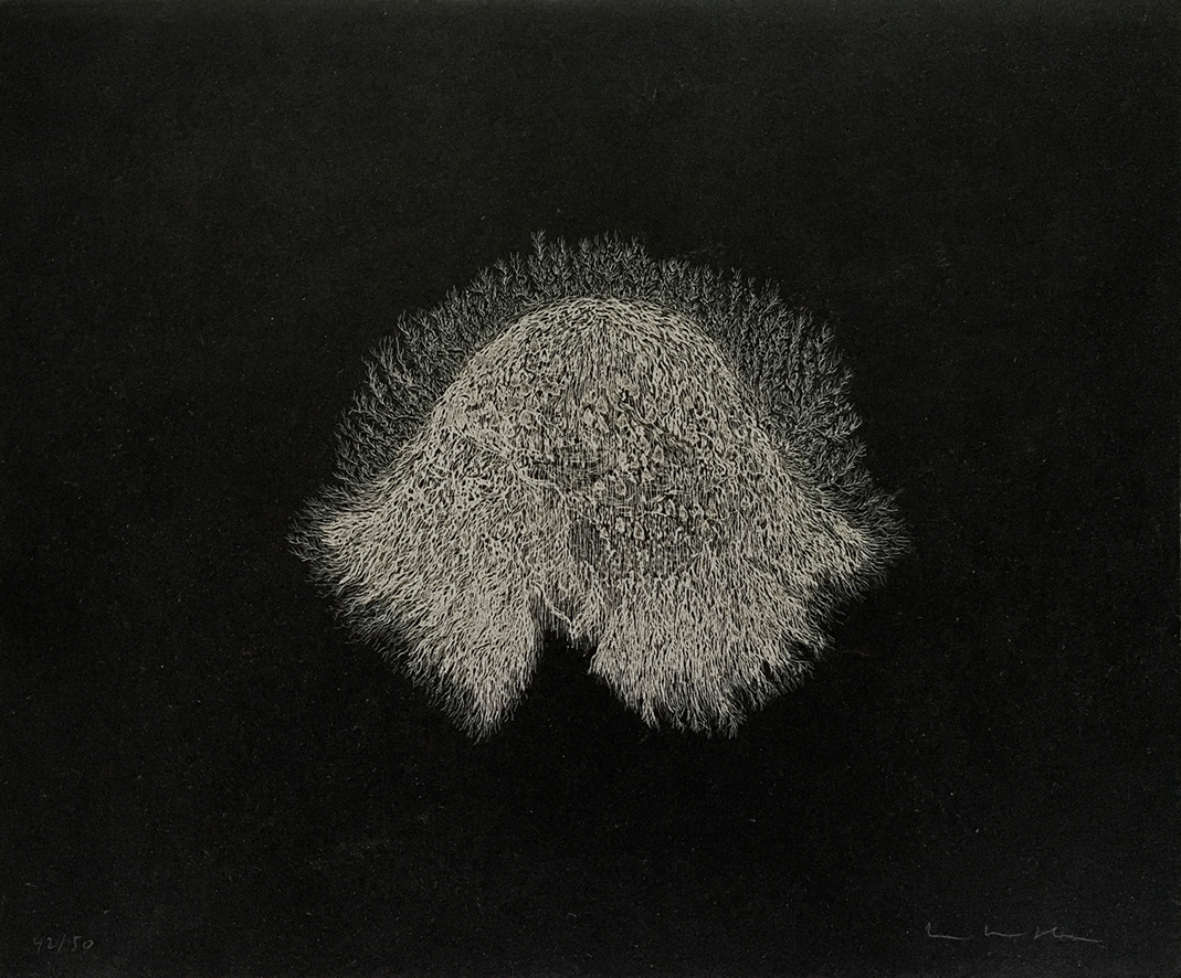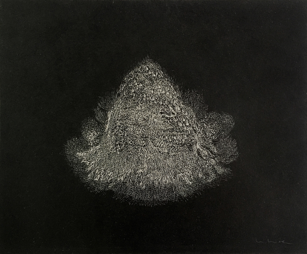 La naturaleza interroga el pensamiento plástico de Muriel Moreau (París, 1975). Sus respuestas son sutilmente procesadas a través de los surcos que abren el barniz dispuesto sobre el metal y que, posteriormente, serán mordidos por el ácido. Una técnica tradicional como el aguafuerte que, modulada por la artista con indudable maestría, es capaz de referir mundos, de trazar escrituras complejas, de generar perspectivas inéditas y de movilizar al espectador ante la imagen resultante. No se trata, por tanto, de plantear la gráfica como un fin en sí mismo sino como componente activo de una propuesta cuyo espesor técnico supera el de la mera representación. C. D. M.