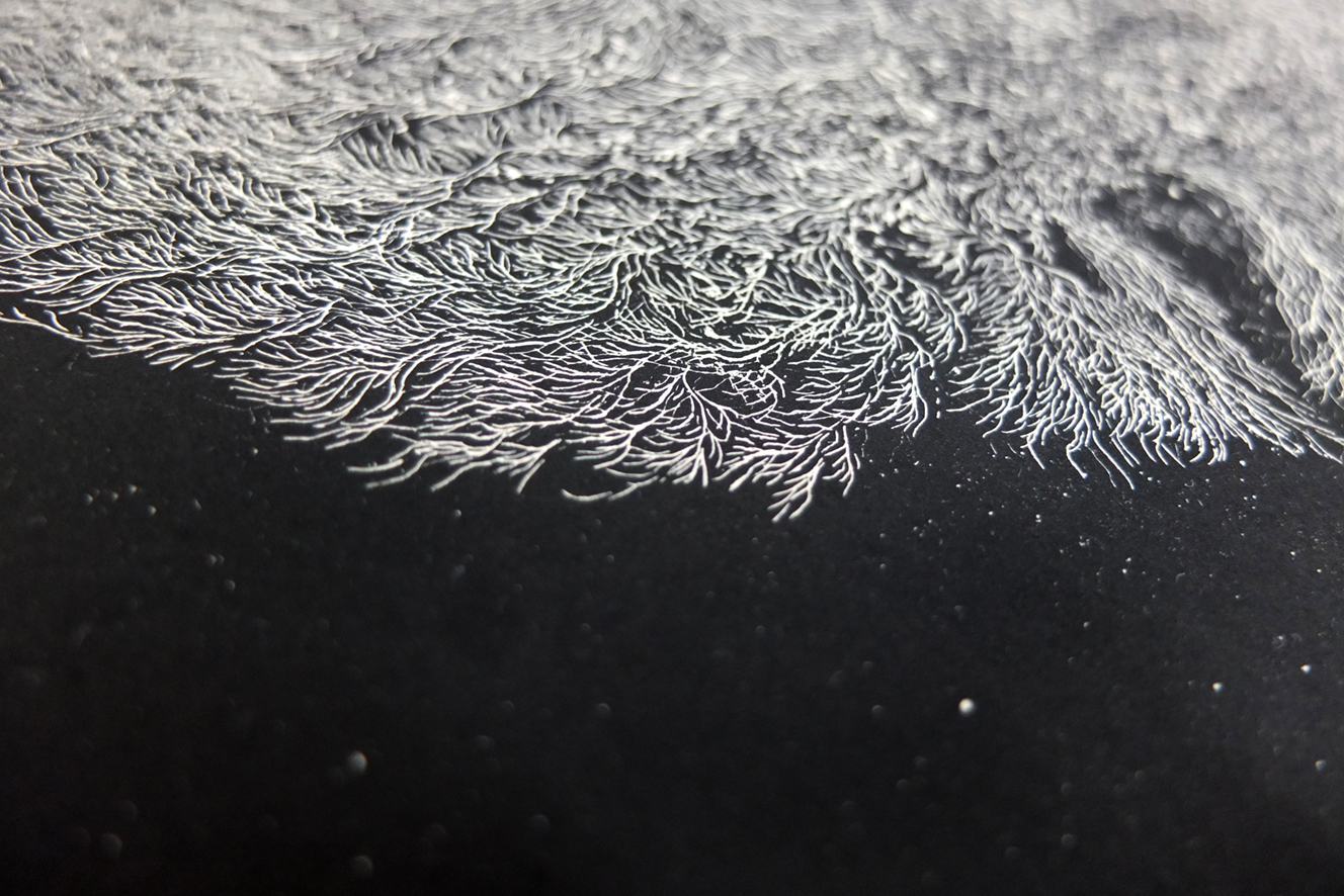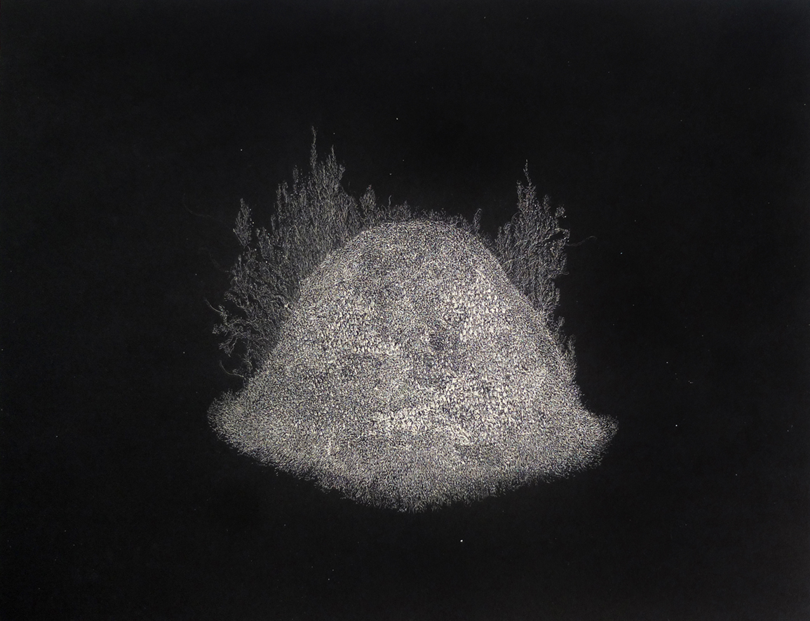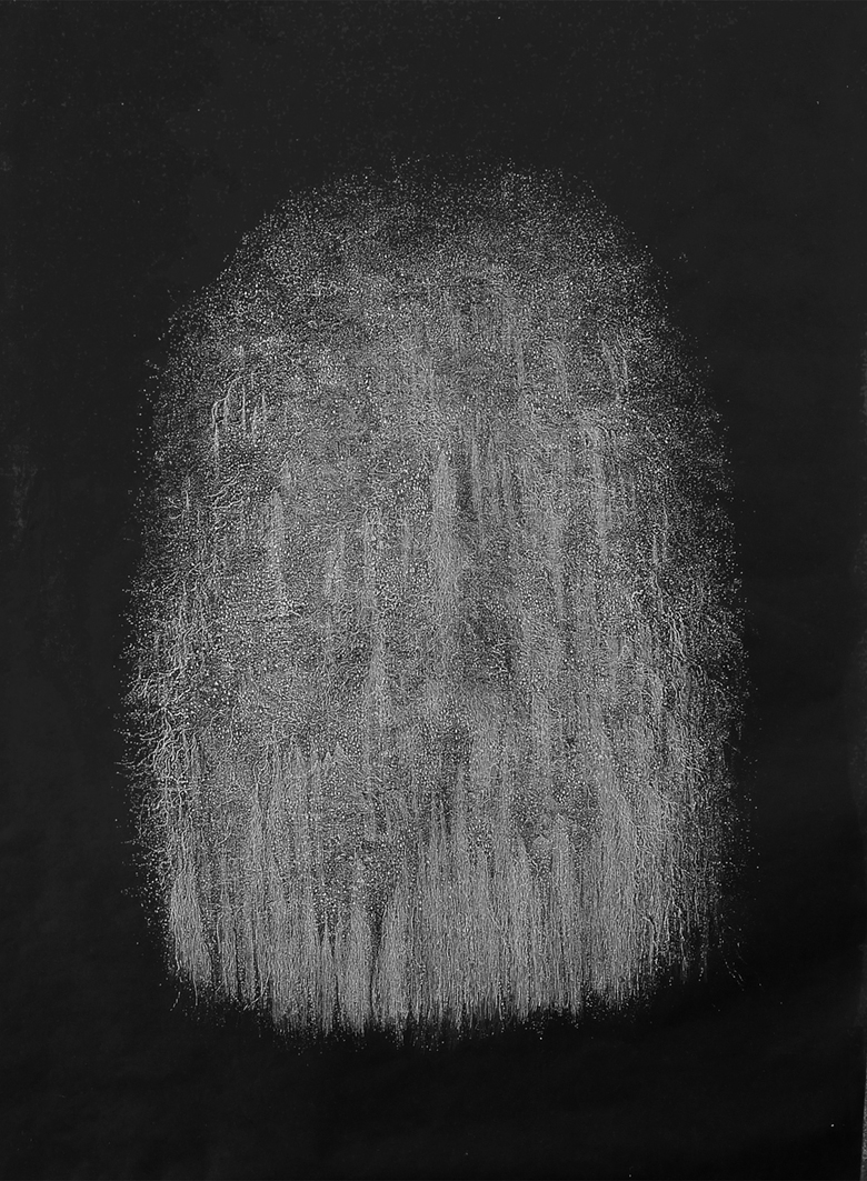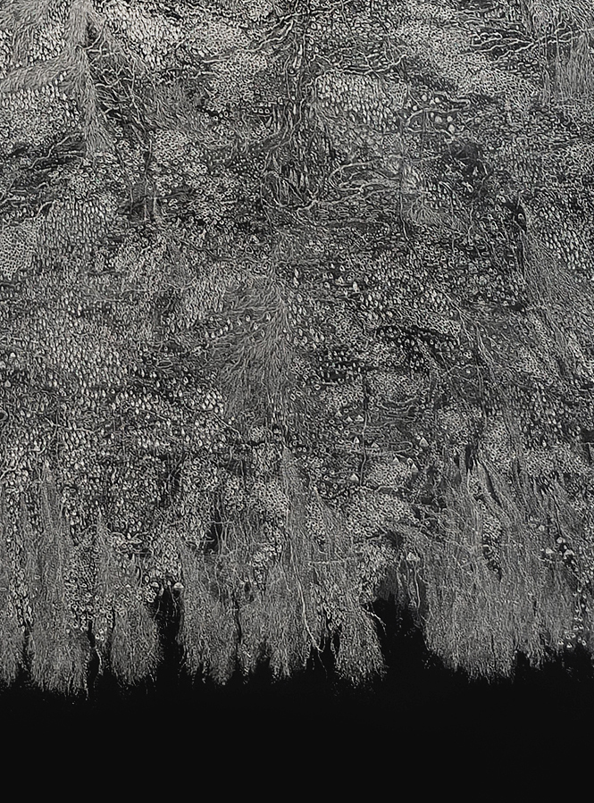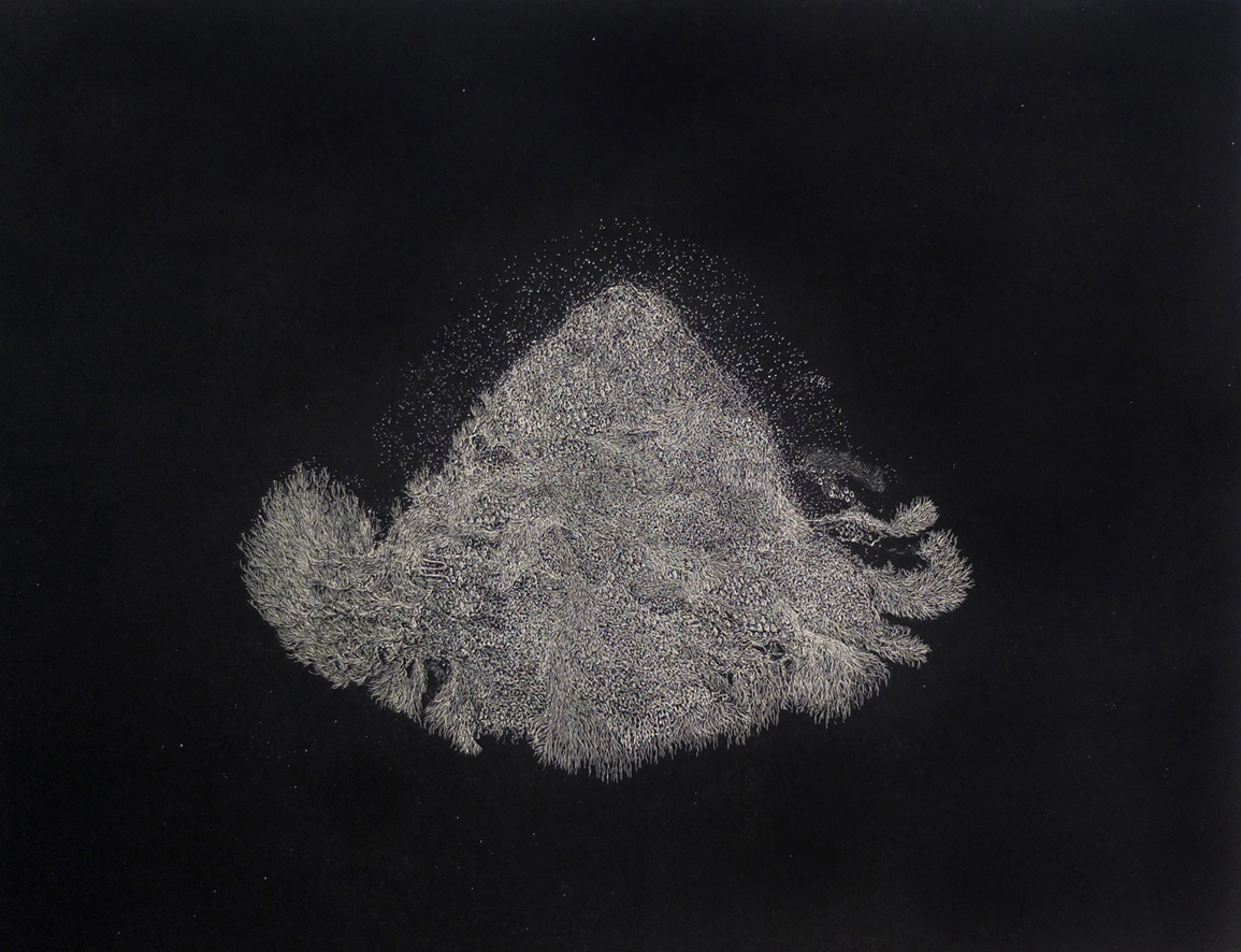 La naturaleza interroga el pensamiento plástico de Muriel Moreau (París, 1975). Sus respuestas son sutilmente procesadas a través de los surcos que abren el barniz dispuesto sobre el metal y que, posteriormente, serán mordidos por el ácido. Una técnica tradicional como el aguafuerte que, modulada por la artista con indudable maestría, es capaz de referir mundos, de trazar escrituras complejas, de generar perspectivas inéditas y de movilizar al espectador ante la imagen resultante. No se trata, por tanto, de plantear la gráfica como un fin en sí mismo sino como componente activo de una propuesta cuyo espesor técnico supera el de la mera representación. C. D. M.