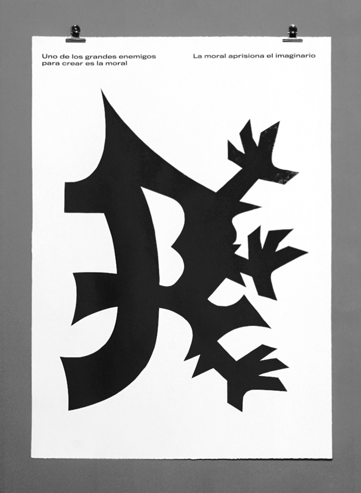 Dentro del proyecto 'Espacios de recreo' realizado en colaboración con el dúo de diseñadores de 'Espacio Gomina' como parte del la programación del Hybrid Festival 2017, el joven artista Ostap Yashchuk propone una serie de formas tipográficas que referencian a la estética heráldica y que se conbinan con frases a modo de mantras pertenecientes al ideario del artista Ángel Bados, referente de una importante generación del arte español de los últimos 40 años.